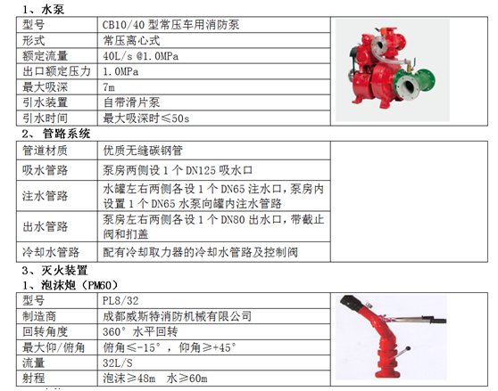 消防炮射程 | 泡沫車:泡沫≥40m 水≥45m 水罐車:≥55m |