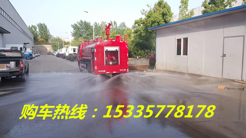 該車配置:6噸水罐容積,消防泵、夾心取力器、消防炮、帶前沖后撒側(cè)噴功能,民用消防車好幫手。