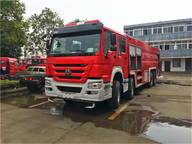 JDF5410GXFPM240型泡沫消防車,采用重汽豪沃ZZ5437V4667E1底盤改裝而成。整車由消防員乘員室和車身兩大部分組成,乘員室為一排半,可乘坐2人,該車為外露罐結構,車身前部為水罐,后部為泵房。載液罐體為優質碳鋼,與底盤采用彈性連接,載水20450kg,泡沫液量3100kg,裝備了上海茸申消防器材有限公司生產CB10/80型常壓消防泵,額定流量80L/S,車頂安裝成都威斯特消防機械有限公司生產的PL64型車用消防炮。該車最大的特點是載液量大、操控性好、維修簡便。可廣泛應用于公安消防隊、廠礦企業及社區、碼頭等場所,撲救大型油類火災或一般物質火災。