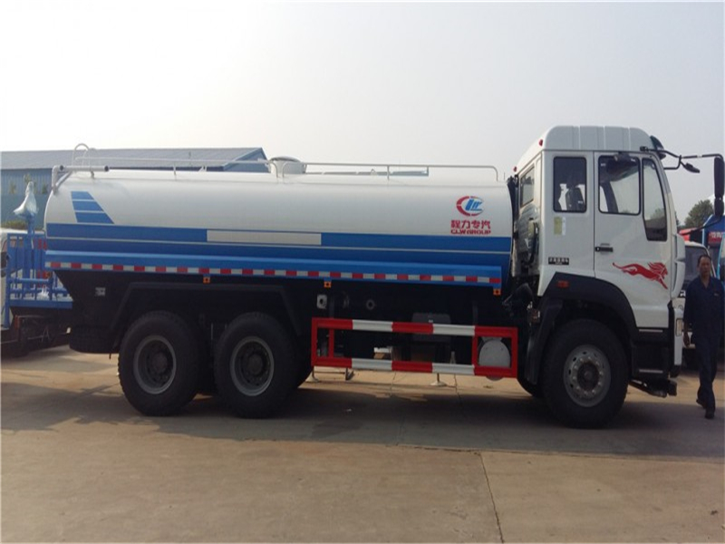 重汽斯太爾20噸灑水車采用國際領先技術、使用方便快捷,比同類灑水泵壓力大、吸程遠、使用壽命長,克服其他灑水泵易被雜物纏住、壓力小、吸水慢的缺點;前沖(噴)后灑,帶側噴,罐體后帶工作臺,平臺上安裝綠化灑水炮。灑水炮可全方位旋轉,可連續調成直沖狀、大雨、小雨、毛毛雨;罐體有效物理容積大,一次作業時間長,無須頻繁加水,工作效率高;電、液、氣集中控制,整車具有良好的人機操作界面,操作方便靈活,駕駛員可在駕駛室內完成各種動作的操作,操作安全、舒適;罐體焊接全部采用CO2氣體保護自動焊接,焊機質量可靠,外型美觀,罐體的截面形狀為橢圓形,內部制造成多倉室結構,各個倉室用隔板(防波板)隔開。隔板與罐體之間采用焊接剛性連接形式;.罐體頂部開有人孔。人孔既可以作為工作人員進行罐內檢修的進出口,也可以作為加水孔用于向罐內加注水。用戶可選裝消防大功率消防水泵、應急時可做消防灑水車使用。