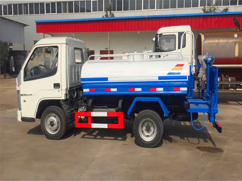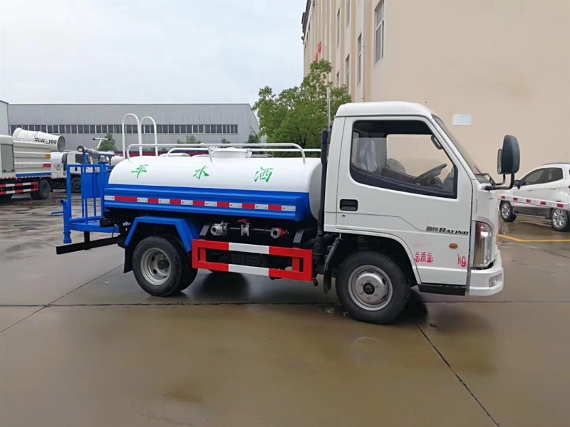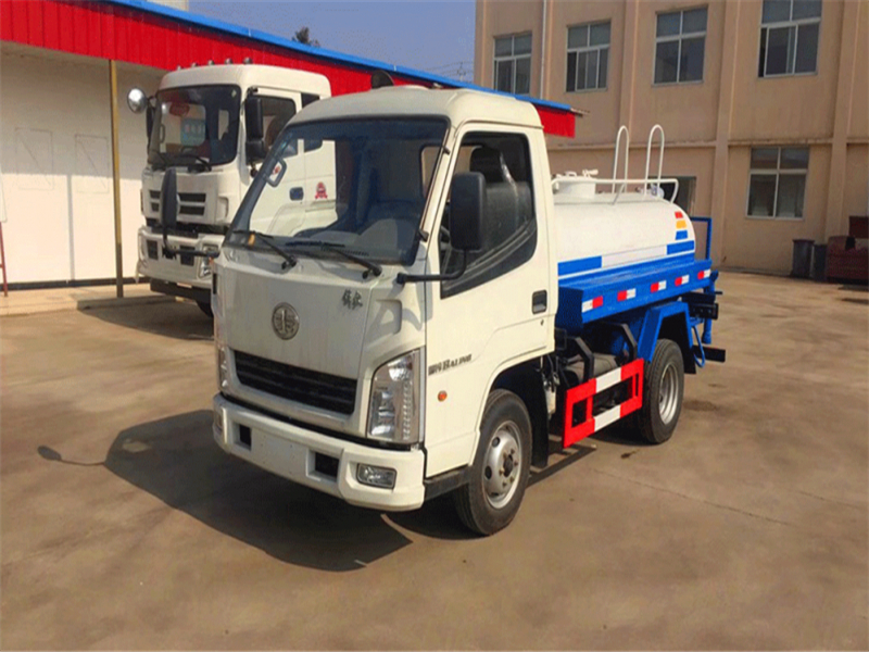 解放2-3噸灑水車配有前沖(噴)后灑,帶側噴,帶65消防接口,后平臺帶泡不帶門,前封頭帶水位計,后平臺主管路帶1寸澆花接口,后爬梯,配3米長抽水鋼絲塑料管兩根,用于抽水作業使用;罐后帶工作平臺,平臺上帶安全護欄,裝高位綠化灑水炮一個,灑水炮可全方位360度旋轉,可連續調成直沖狀、大雨、小雨、毛毛雨等不同噴灑方式,調成直沖狀射程長度≥28m、高度≥12m,調成細雨狀射程寬度≥15m;后工作平臺下用槽鋼連接焊有5mm厚保險杠,提高灑水車的主動安全性,泵可自吸自排,安裝過濾網,帶消防接口,可通過消防栓進水,帶自流閥,隨車選裝20米綠化卷盤,可噴灑農藥。