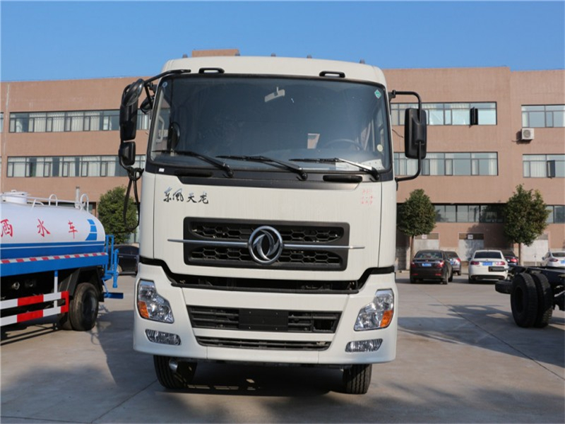 東風天龍20噸灑水車采用康明斯245馬力ISD245 50型號的電噴、增壓發動機,動力強勁,6700ml排量,國五標準排量,節能環保。陜齒小八檔變速器,滿足司機的駕駛需求,輕松換擋,爬坡無憂。7噸前橋,10噸后橋,4350+1350mm雙橋軸距,承載性更強。11.00R20原廠鋼絲胎,有較高的承載性能、牽引性能、緩沖性能。同時,具備高耐磨性和耐屈撓性,以及低的滾動阻力與生熱性。適合各種路面工作,使用壽命較長久。帶方向助力,離合助力器,氣剎制動。安全性能更高。
