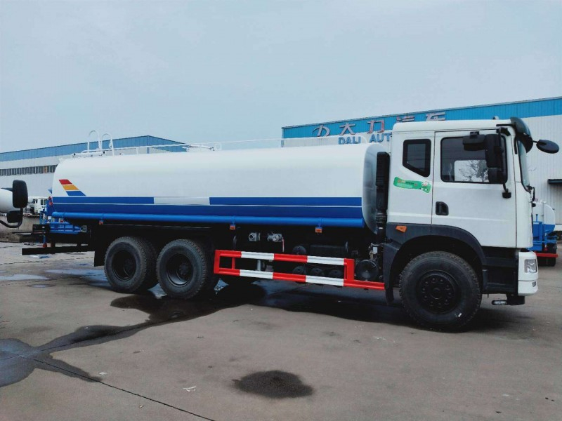 東風T5后雙橋20噸灑水車底上裝配置:東風T5底盤后雙橋20噸灑水車采用優勢武鋼產碳鋼板制作,水壓封頭自動焊接,內部2-5道防浪沖擊板,配品牌大功率灑水泵,流量30-60噸每小時,壓力大流量強,帶樹脂透明液壓計,管道采用無縫鍍鋅鋼板連接,閥門采用鋁合金和不銹鋼材質,2道防銹底漆2道面漆,面漆采用烤漆工藝,整車采用流水線式生產模式,模塊化批量化生產工藝。 專用功能:前沖左右噴頭沖路射程15米寬,后灑扇形降塵降溫15平方米覆蓋面,罐尾頂部2個高位花灑可對道路綠化帶澆灌作業,尾部操作平臺帶灑水炮射程28米遠,可遠距離澆水滅火,可自吸抽水入罐。 隨車配件:送前沖圓嘴噴頭2個,前沖鴨嘴噴頭2個,花灑噴頭2個,可調節水炮1個,自吸水軟管2根,工具箱鎖2把。