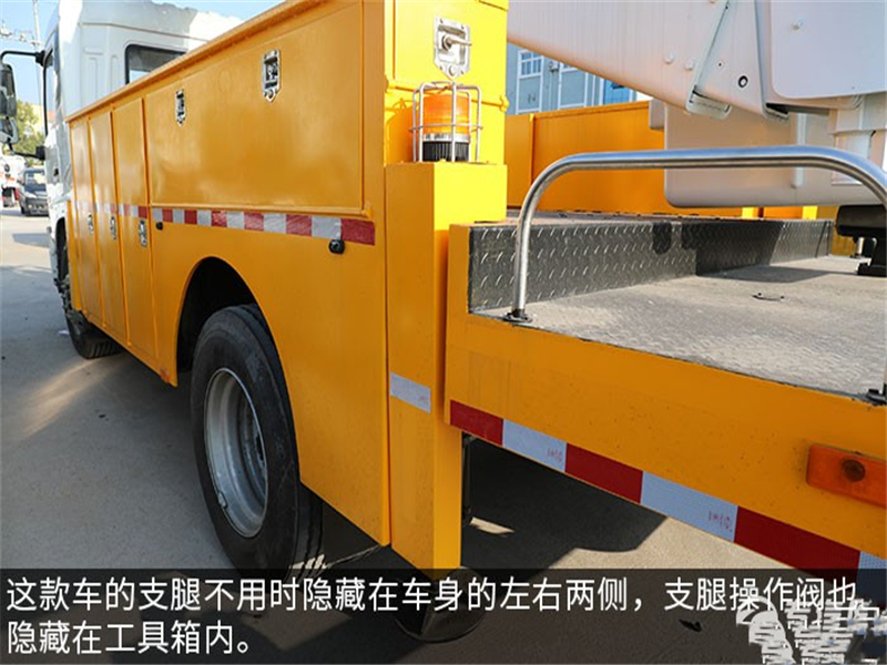 這款車的支腿不用時隱藏在車身的左右兩側,支腿操作閥也隱藏在工具箱內。