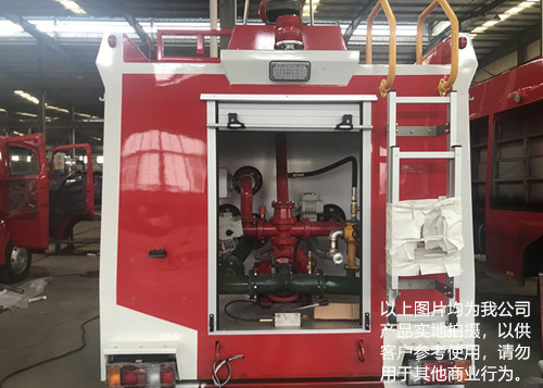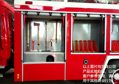 泵房:泵房位于整車后部,兩邊與后邊設鋁合金卷簾門,內有照明燈,泵室兩側可放置部分常用器材