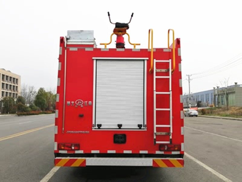 江特牌JDF5140GXFSG55/E6水罐消防車采用東風(fēng)EQ1160GSZ6DJ底盤改裝而成。整車由消防員乘員室和車身兩大部分組成,乘員室為單排改雙排,可乘坐3+3人,該車為內(nèi)藏罐結(jié)構(gòu),車身兩側(cè)為器材箱,中部為罐體,后部為泵房。載液罐體為優(yōu)質(zhì)碳鋼,內(nèi)部噴涂環(huán)氧底漆及環(huán)氧瀝青漆,與底盤采用彈性連接,載水5300kg,裝備了上海茸申消防設(shè)備有限公司生產(chǎn)CB10/40-RS型常壓消防泵,額定流量40L/S,車頂安裝成都威斯特消防機(jī)械有限公司生產(chǎn)的PS8/40W型車用消防炮。該車最大的特點(diǎn)是載液量大、操控性好、維修簡(jiǎn)便??蓮V泛應(yīng)用于公安消防隊(duì)、廠礦企業(yè)及社區(qū)、碼頭等場(chǎng)所,撲救大型油類火災(zāi)和一般物質(zhì)火災(zāi)。