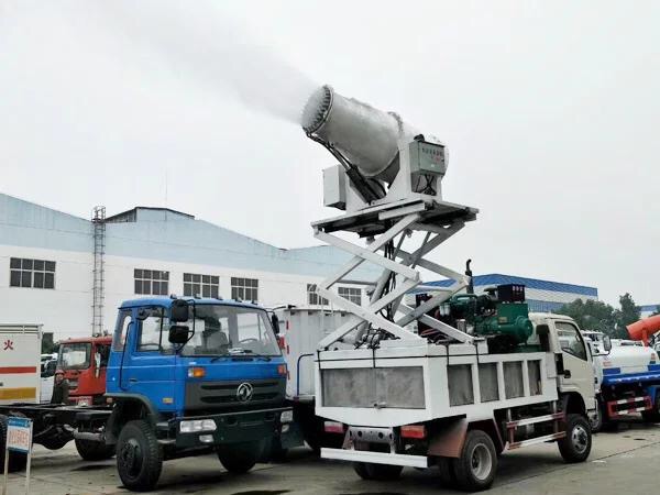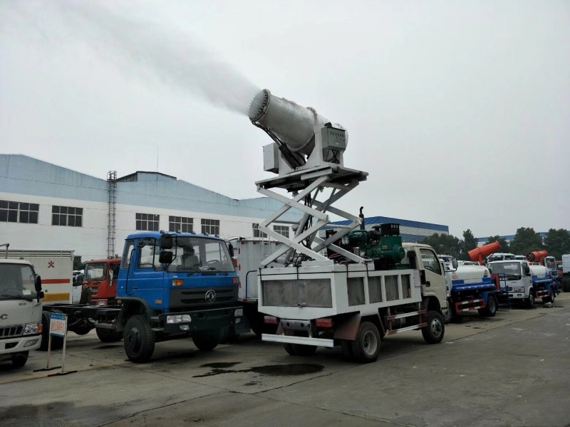 2. 東風福瑞卡抑塵車工作效率高、噴霧速度快;對容易引起塵埃的堆場噴水除塵時,噴出的霧粒細小、與飄起的塵埃接觸時,形成一種潮濕霧狀體,能快速將塵埃抑制降沉,霧量沉降率可達95%。