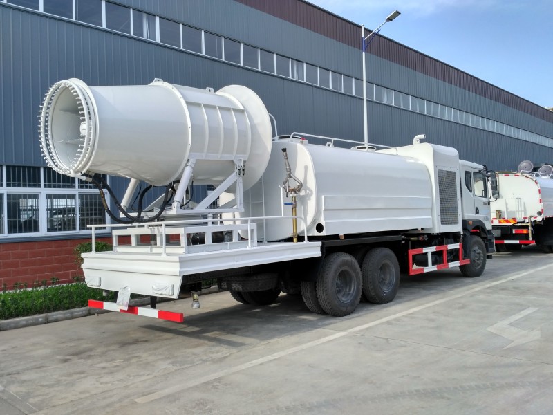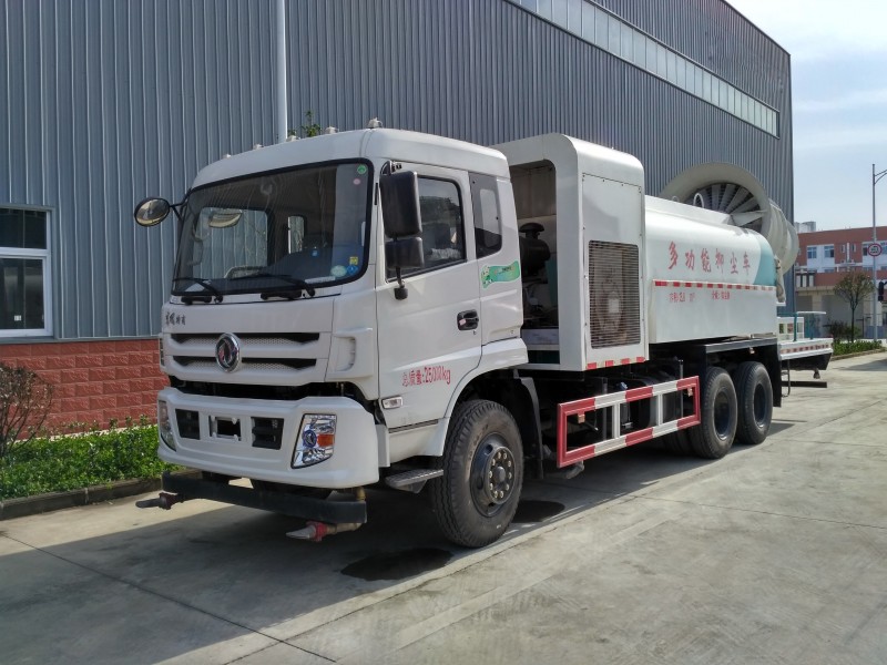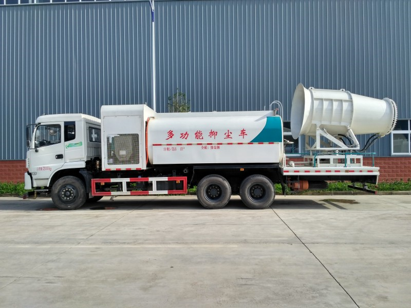 2. 東風(fēng)霧炮車工作效率高、噴霧速度快;對(duì)容易引起塵埃的堆場(chǎng)噴水除塵時(shí),噴出的霧粒細(xì)小、與飄起的塵埃接觸時(shí),形成一種潮濕霧狀體,能快速將塵埃抑制降沉,霧量沉降率可達(dá)95%。