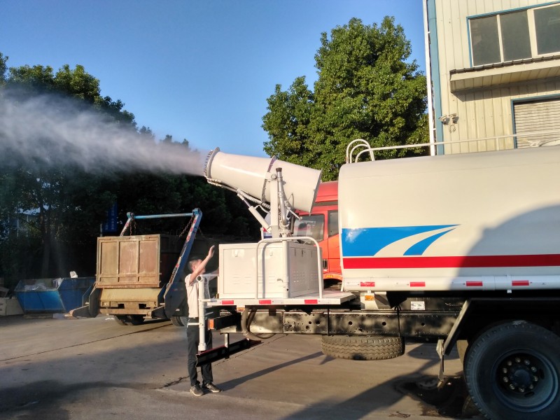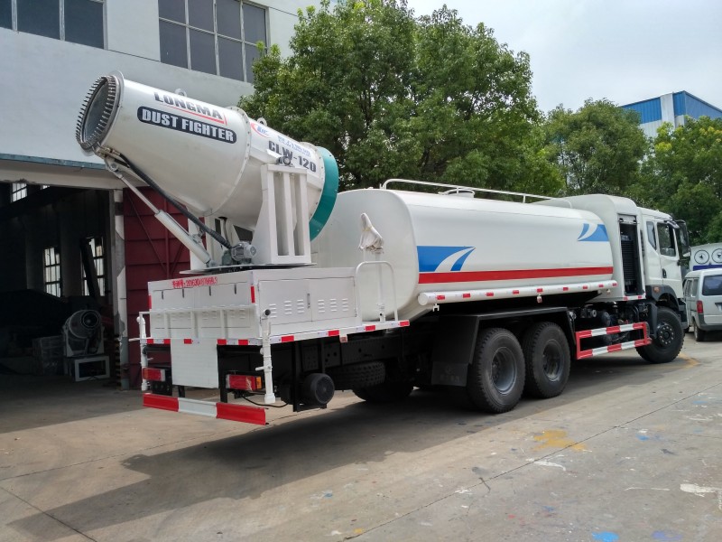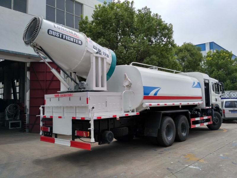 該東風16噸抑塵車負載的大型霧炮可噴射120米遠、70米高的水霧,相比普通灑水車,同樣10噸水,普通灑水車只能噴灑10分鐘,而新型霧炮車可以噴灑1個小時,覆蓋面積超過3萬平方米,大大提高了水資源利用率。