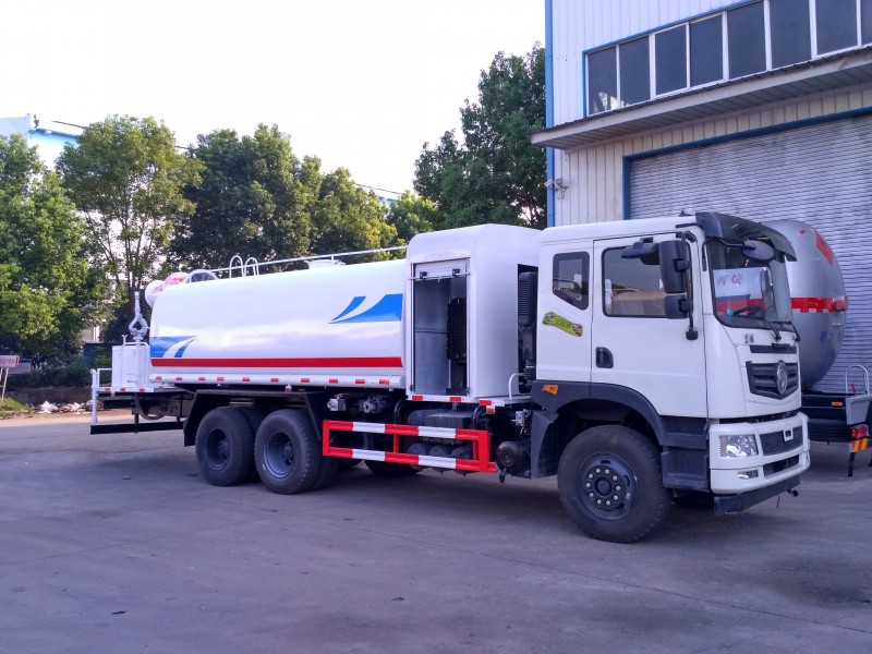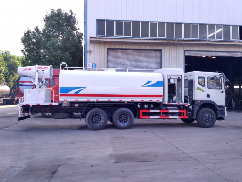 3. 帶前部沖洗路面噴灑裝置、后部扇形降塵噴灑裝置,兩側面噴灑裝置,后部工作平臺、平臺上安裝綠化灑水炮(炮噴射形狀可調)。