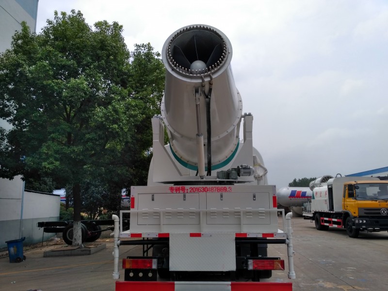 東風T5后雙橋16噸抑塵車上裝分為霧炮、機組、水罐罐體三大部分,依靠環保霧炮上高速運轉的風機風送原理,把罐體內的水經霧化風送到30--120米遠的射程,東風霧炮車噴射的水霧顆粒極為細小,達到微米級,在霧霾天氣可以進行液霧降塵、分解淡化空氣中的顆粒濃度、能有效分解空氣中的污染顆粒物、塵埃等,將漂浮在空氣中的污染顆粒物迅速逼降地面,達到清潔凈化空氣的效果。