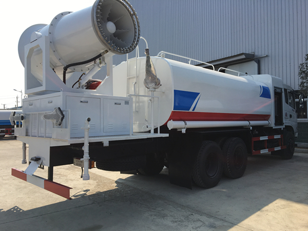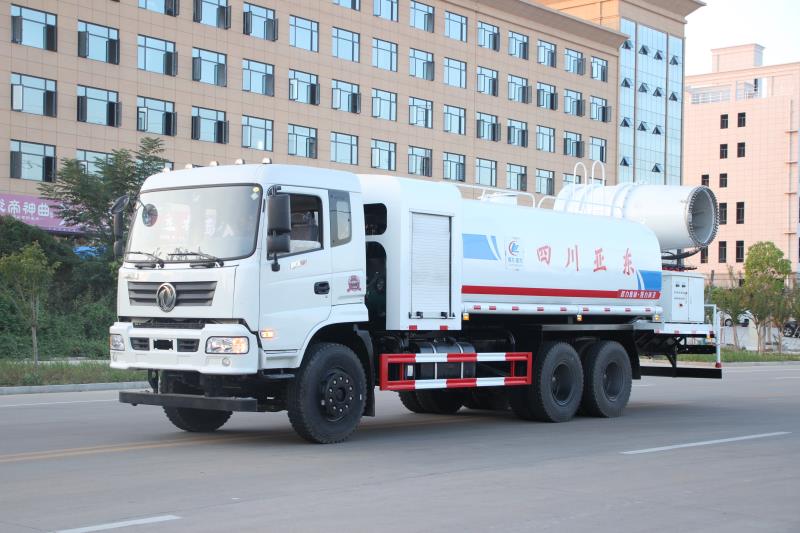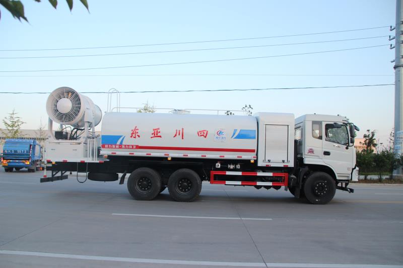 1. 東風后雙橋霧炮車17方抑塵車功力強、射程遠、穿透力強、霧粒附著力強、覆蓋范圍廣、可以實現精量噴霧。