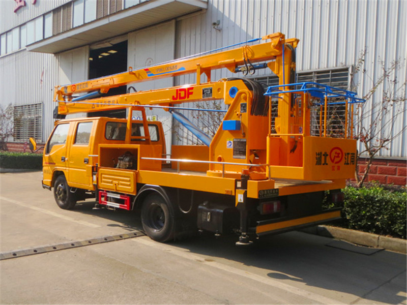 上裝使用兩節折臂液壓舉升式設計,作業高度可達14米,工作斗承載質量200KG。各工作臂均裝有定向平衡閥,用以提升臂架升、降、停止過程中的平穩性。轉臺、工作斗雙工位操作,安全又方便。工作臂可360°全方位旋轉,有效擴大作業范圍,提高工作效率。